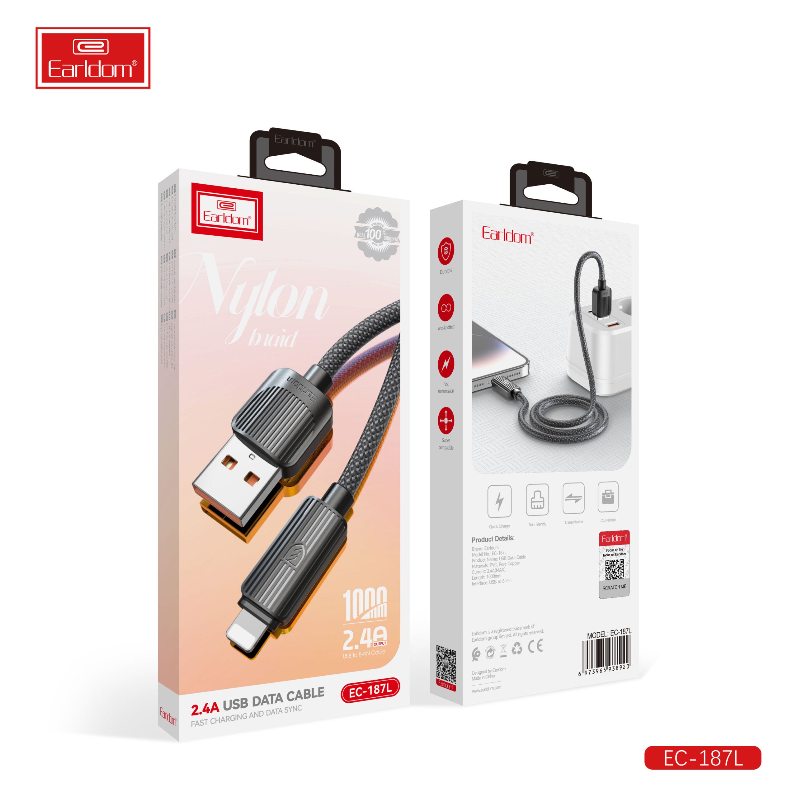 Câble de données USB Earldom 2,4 A, gaine en nylon noir tressé, 1000 mm, EC-187C