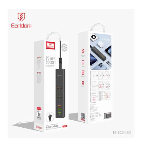 Prise d'alimentation Earldom 6 ports USB-C + 3 ports USB SC24 Noire