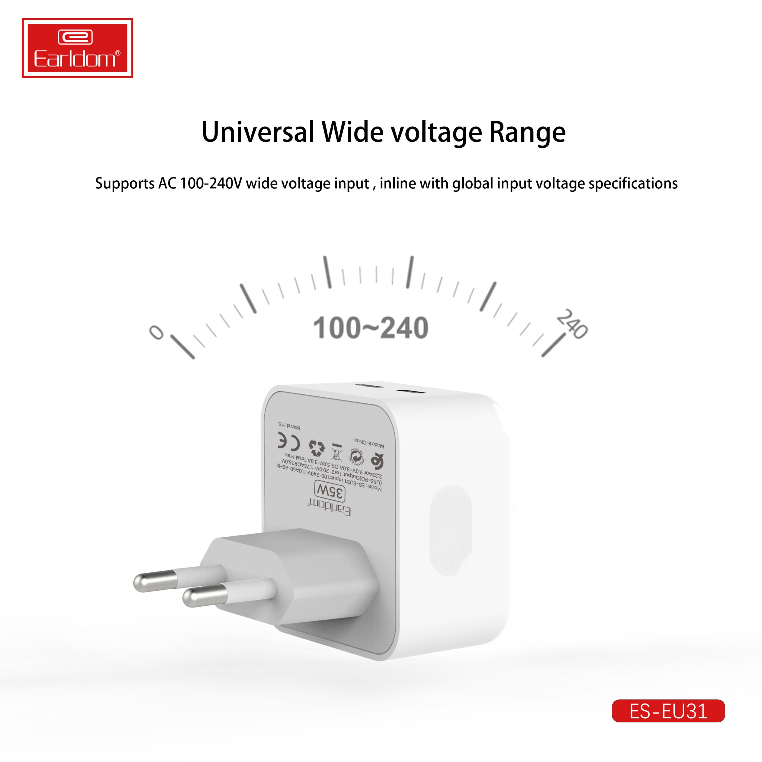 Adaptateur secteur Earldom USB C+C 35 W EU31 sans câble, blanc