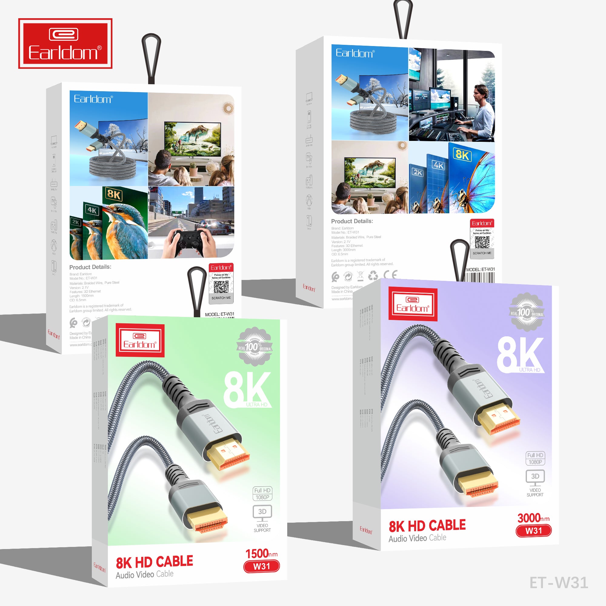 Earldom Câble audio-vidéo HD 8K 3000 mm Noir W32
