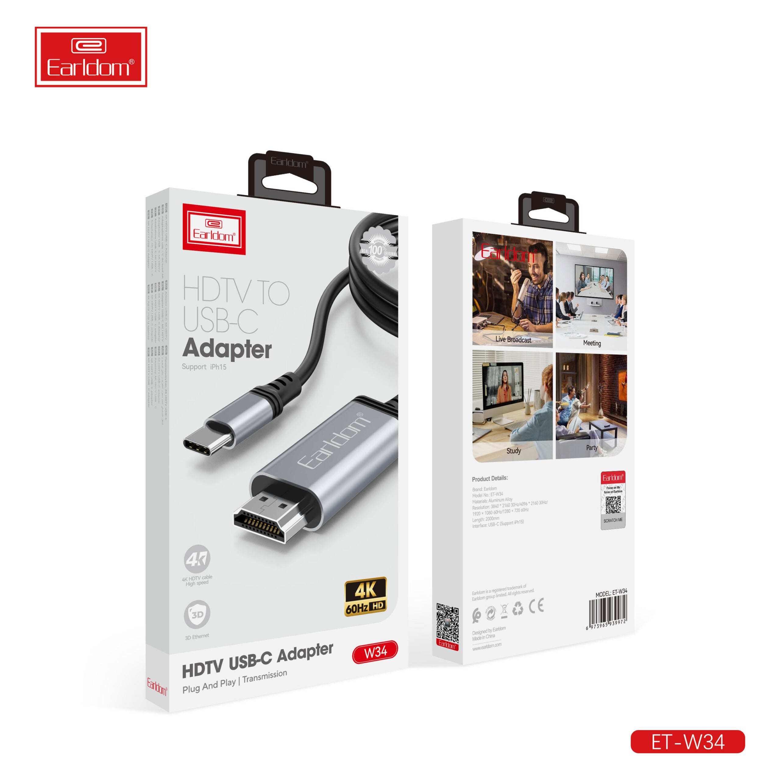Adaptateur Earldom HDTV vers USB-C 4K Noir W34