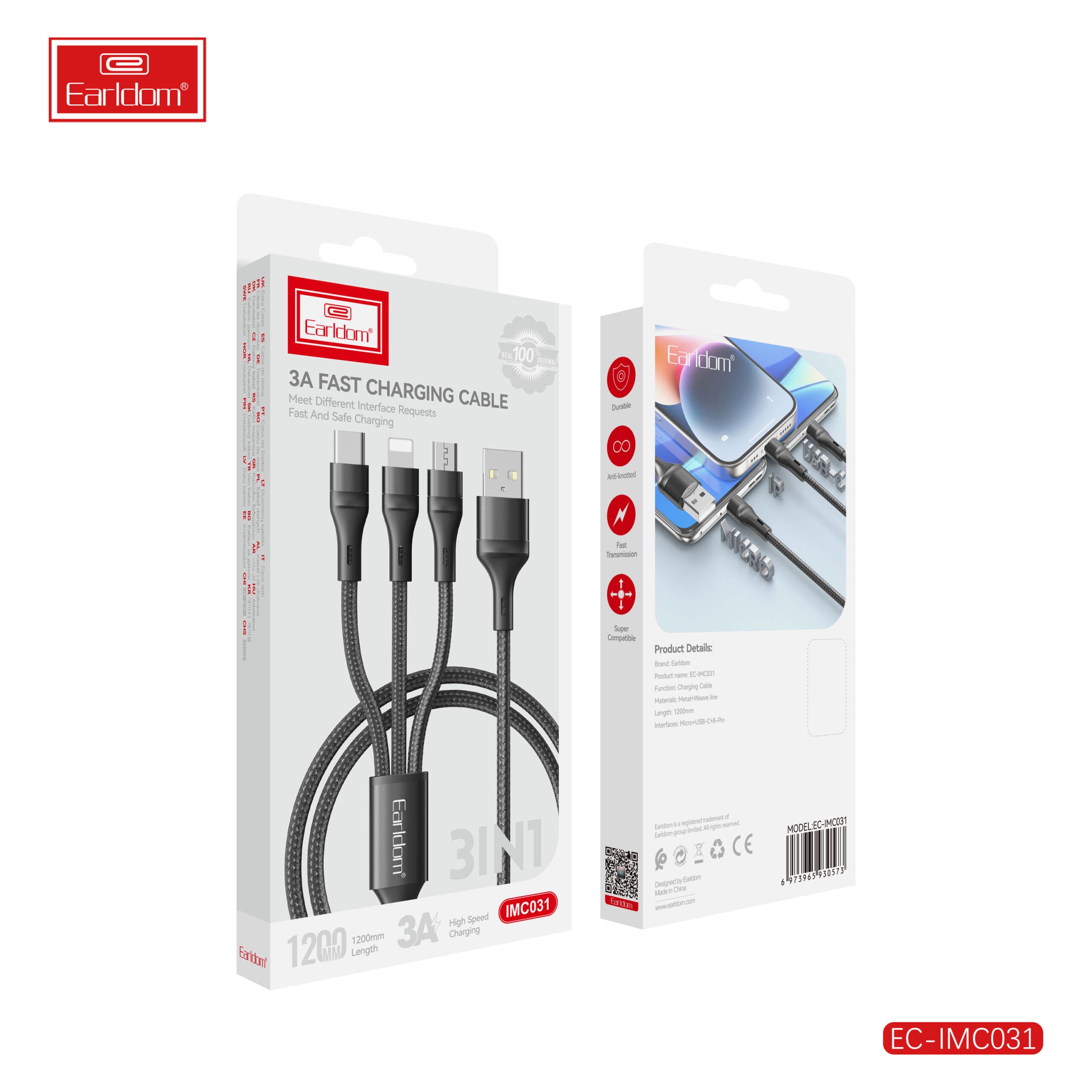 Câble de charge rapide Earldom 3A 3-en-1 1200 mm Noir IMC031