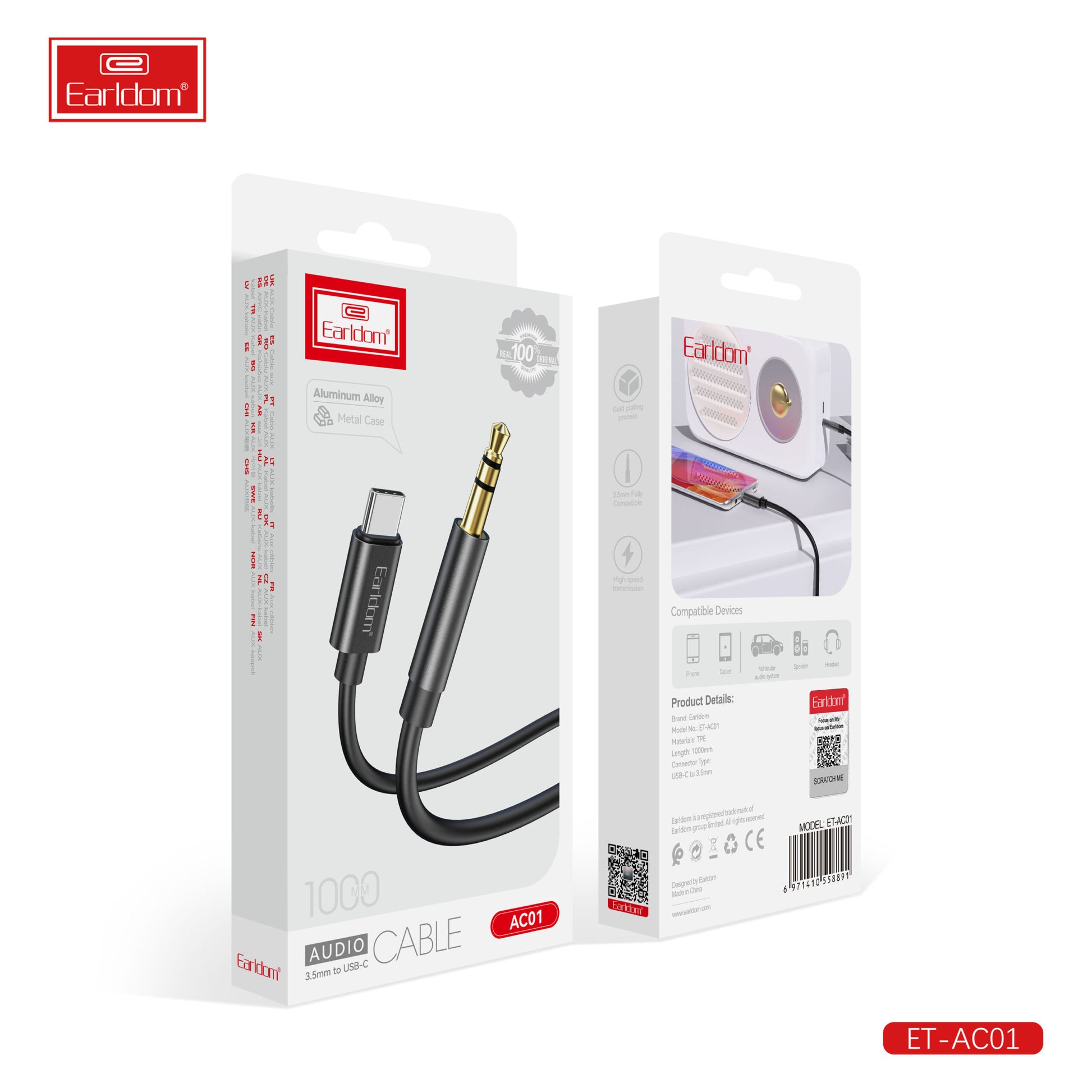 Earldom 2 in 1 120W Power Adpater & USB-C Data Cable EU48C White